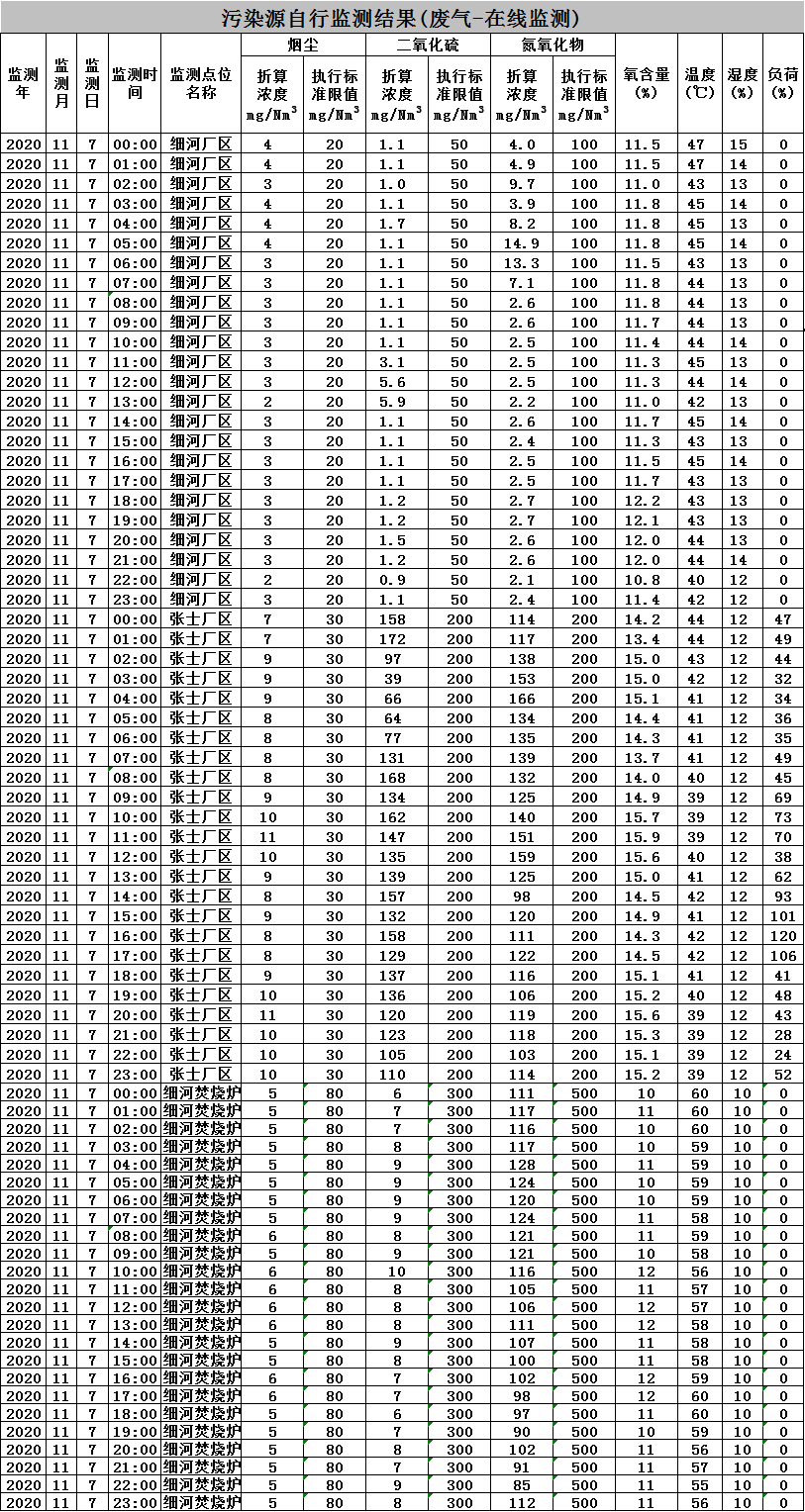 東北制藥集團股份有限公司環(huán)境監(jiān)測數(shù)據(jù)-2020.11.7