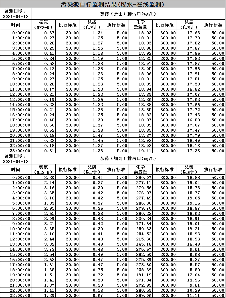 東北制藥集團股份有限公司環(huán)境監(jiān)測數(shù)據(jù)-2021.4.13