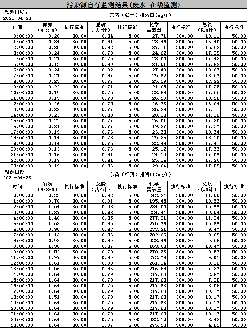 東北制藥集團(tuán)股份有限公司環(huán)境監(jiān)測數(shù)據(jù)-2021.4.23