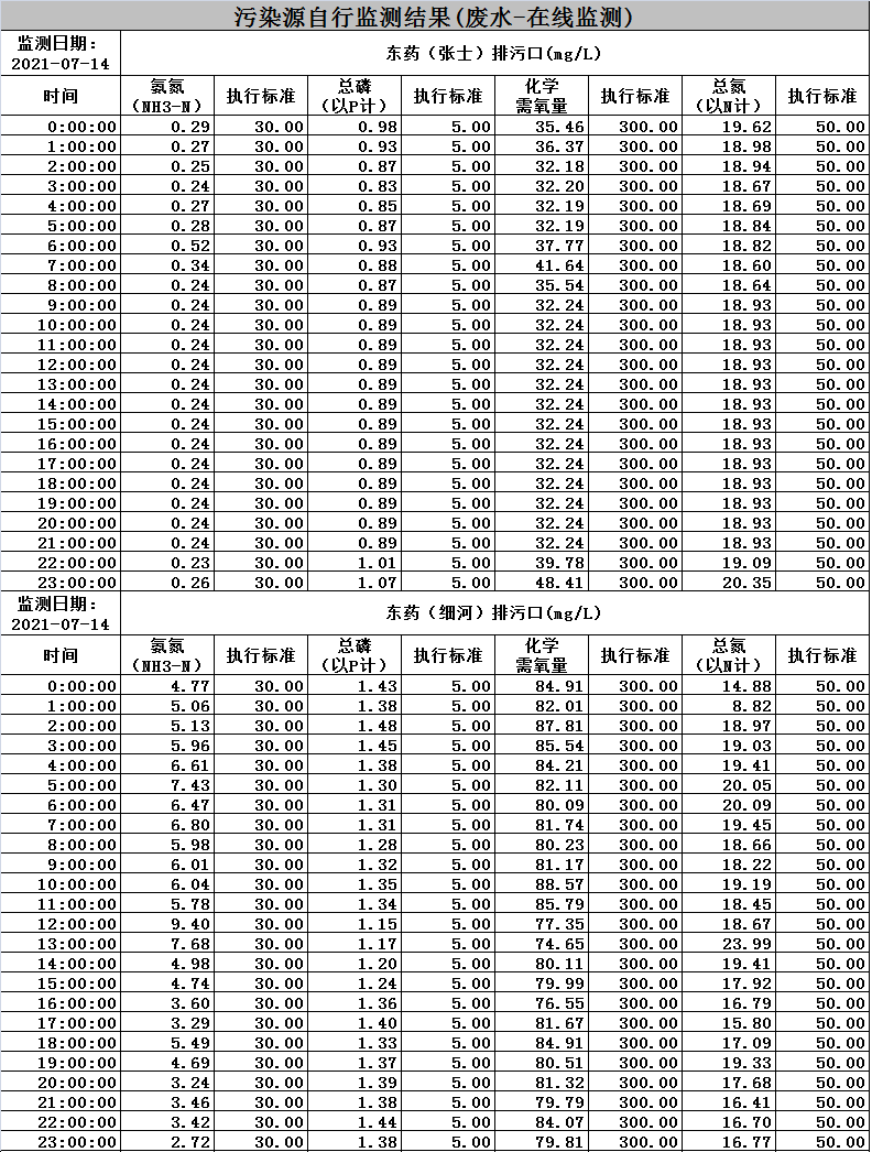 東北制藥集團(tuán)股份有限公司環(huán)境監(jiān)測數(shù)據(jù)-2021.7.14