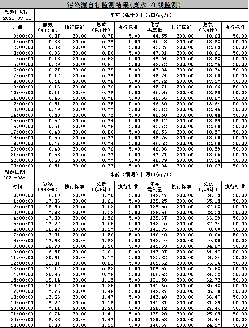 東北制藥集團股份有限公司環(huán)境監(jiān)測數(shù)據(jù)-2021.8.11
