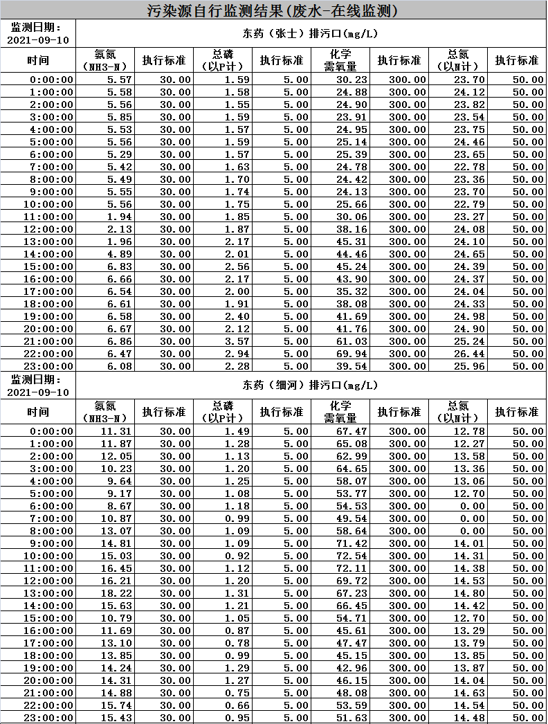 東北制藥集團(tuán)股份有限公司環(huán)境監(jiān)測(cè)數(shù)據(jù)-2021.9.10