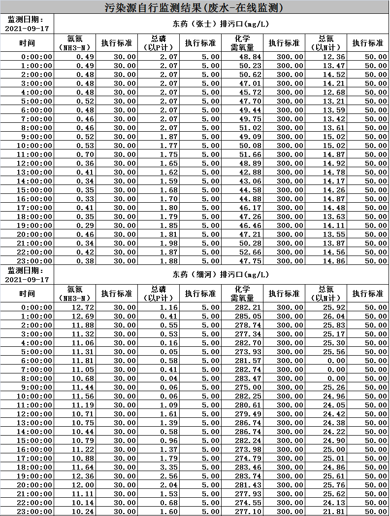 東北制藥集團(tuán)股份有限公司環(huán)境監(jiān)測數(shù)據(jù)-2021.9.17