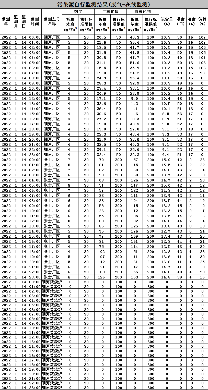 東北制藥集團股份有限公司環(huán)境監(jiān)測數(shù)據(jù)-2022.1.14