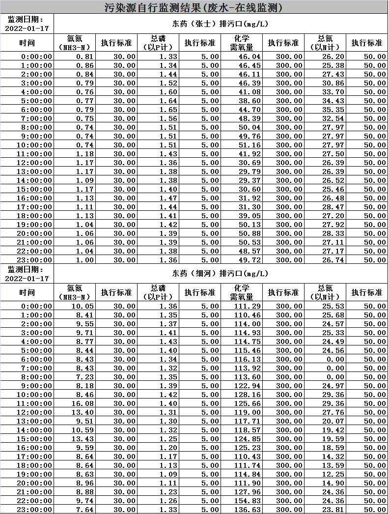東北制藥集團股份有限公司環(huán)境監(jiān)測數(shù)據(jù)-2022.1.17