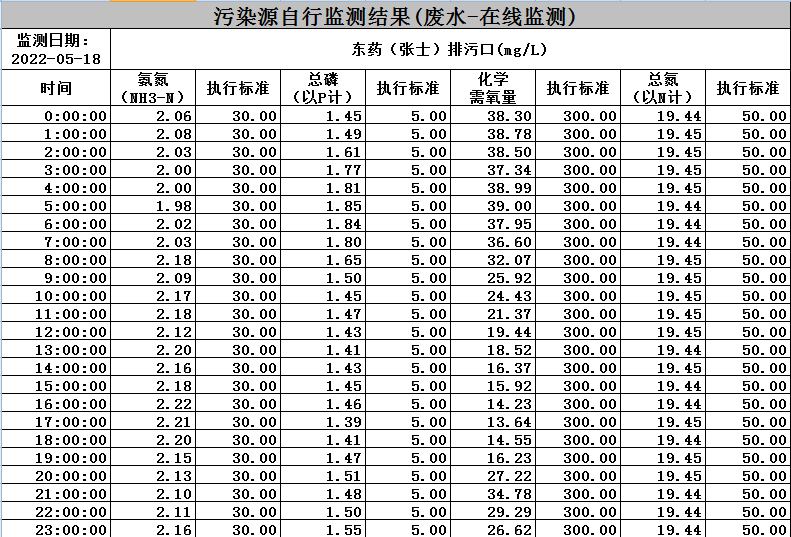 東北制藥集團(tuán)股份有限公司環(huán)境監(jiān)測數(shù)據(jù)-2022.5.18