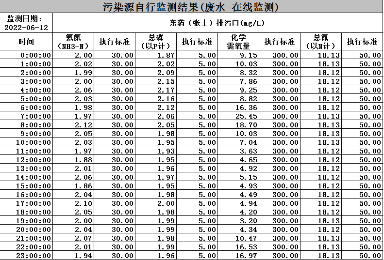 東北制藥集團(tuán)股份有限公司環(huán)境監(jiān)測數(shù)據(jù)-2022.6.12